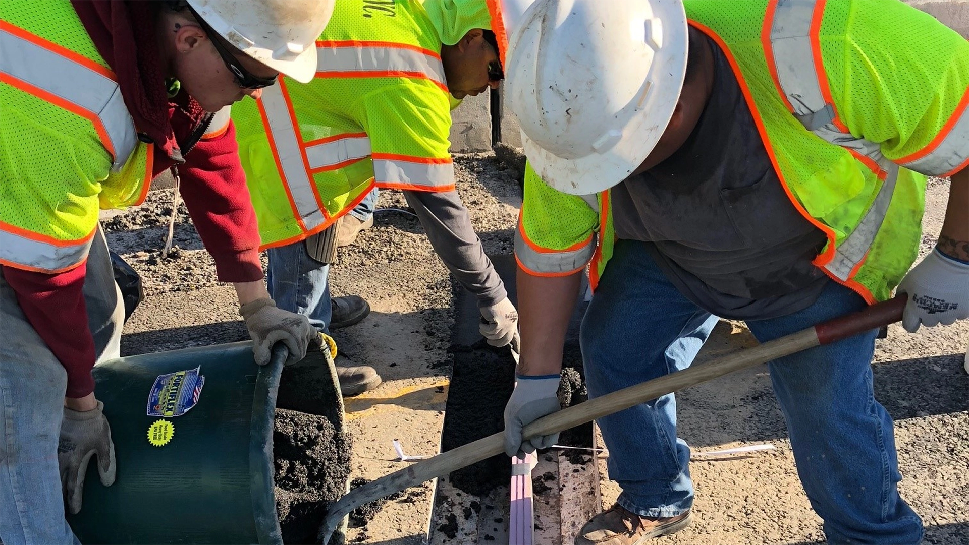 Fibrecrete is a hot applied flexible repair method for concrete or asphalt that is used to repair spalls, potholes, broken joints, corner breaks and most other horizontal defects on concrete or asphalt.